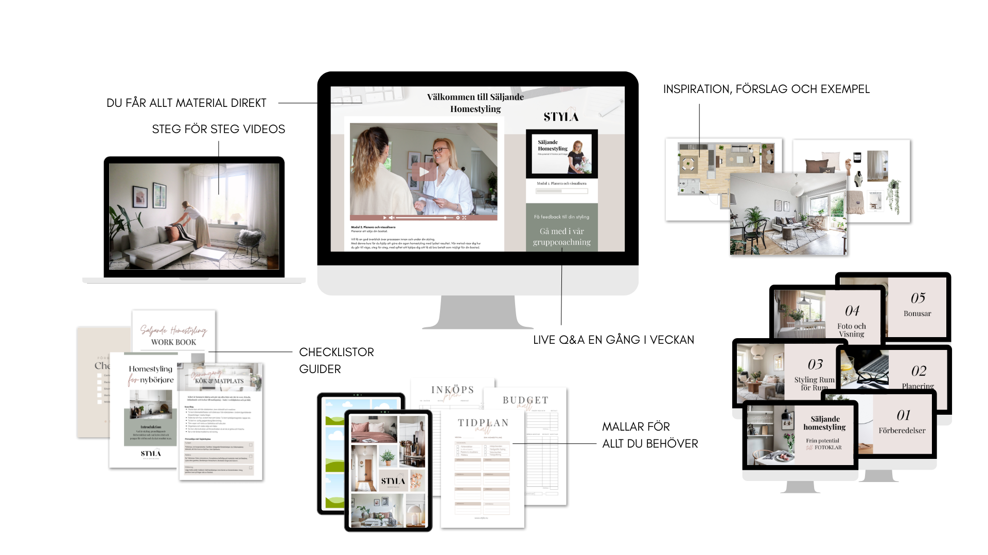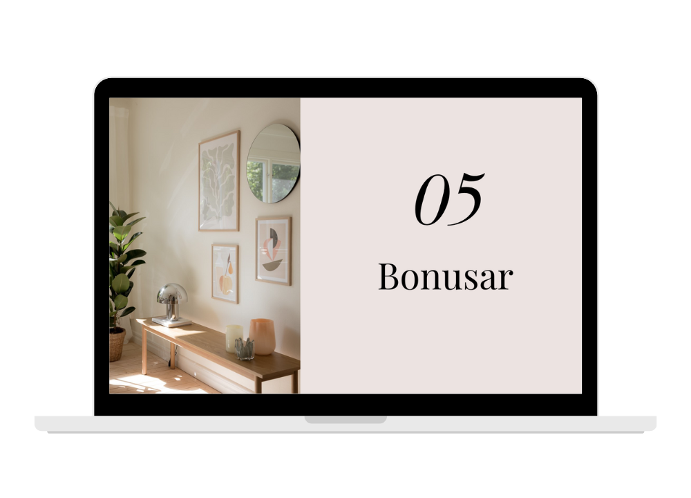 För att göra din styling enklare – och ännu mer säljande – får du tillgång till hela min verktygslåda. Mallar, checklistor och bonusmaterial som ger dig stöd här och nu, men också vid framtida försäljningar.